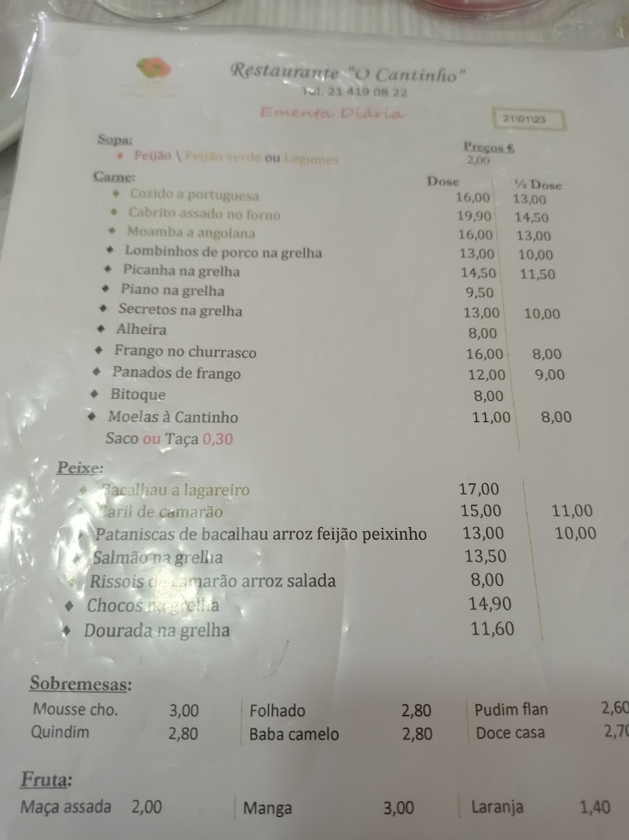 Welcome to O Cantinho, a hidden gem nestled in Linda-a-Velha, Portugal. This charming eatery is renowned for its deliciously crafted dishes that reflect the heart of Portuguese cuisine. Guests rave about the sopa de agrião, a flavorful watercress soup, and the mouthwatering arroz de polvo, octopus rice that delights the palate. Don’t miss the house special dessert, praised for its perfect preparation.